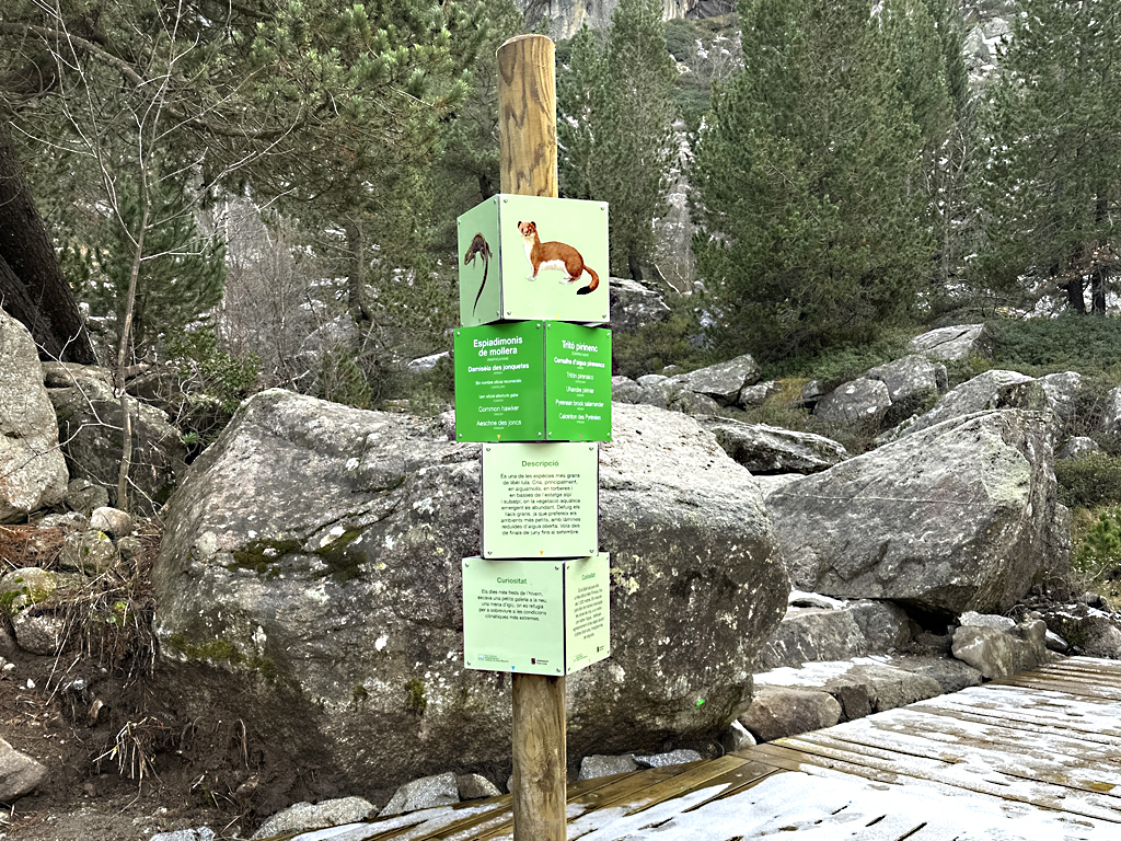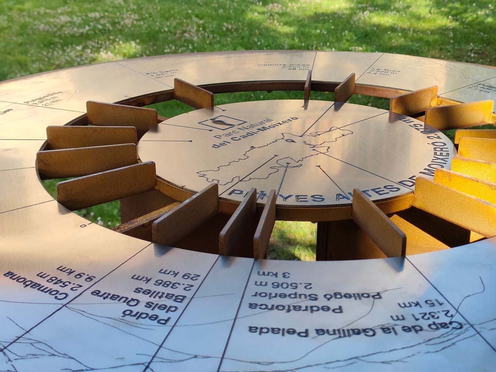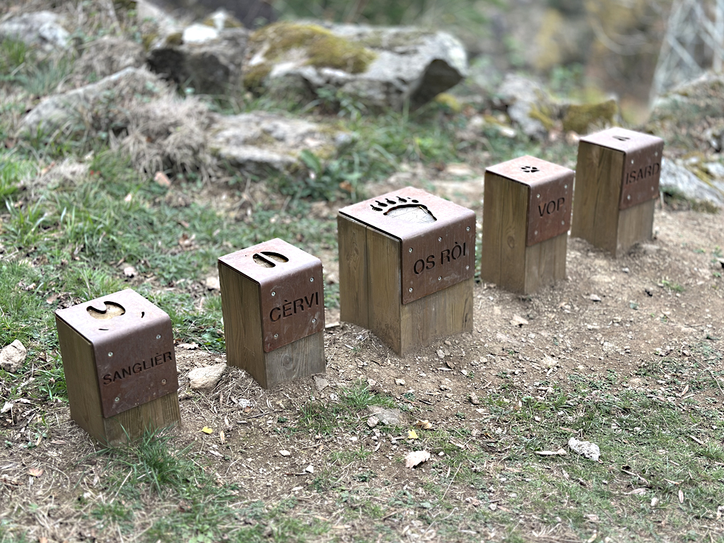 Models desenvolupats: panells tàctils amb relleus i textures; telèmetres per a identificar cims i elements del paisatge; rellotges solars temàtics; elements giratoris o mòbils accionats per la persona visitant; jocs de descoberta per al públic infantil; reproduccions tàctils d’espècies o fòssils; estacions sonores i acústiques.